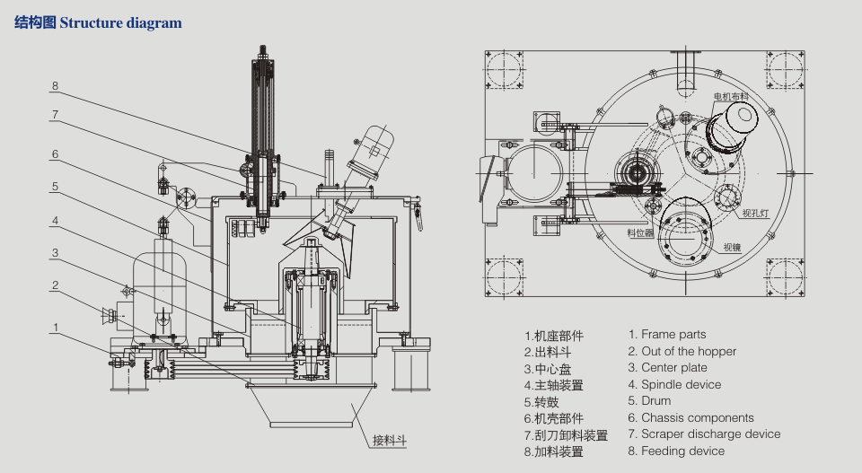 ●結(jié)構(gòu):外殼配置翻蓋及進(jìn)料管、洗滌管、觀察鏡、人工孔、充氮?dú)饪住⒄彰骺?;密閉結(jié)構(gòu),轉(zhuǎn)鼓及外殼、翻蓋等部件為不銹鋼材料制造。轉(zhuǎn)鼓、外殼內(nèi)外表面、機(jī)器外露件表面均拋鏡光處理。